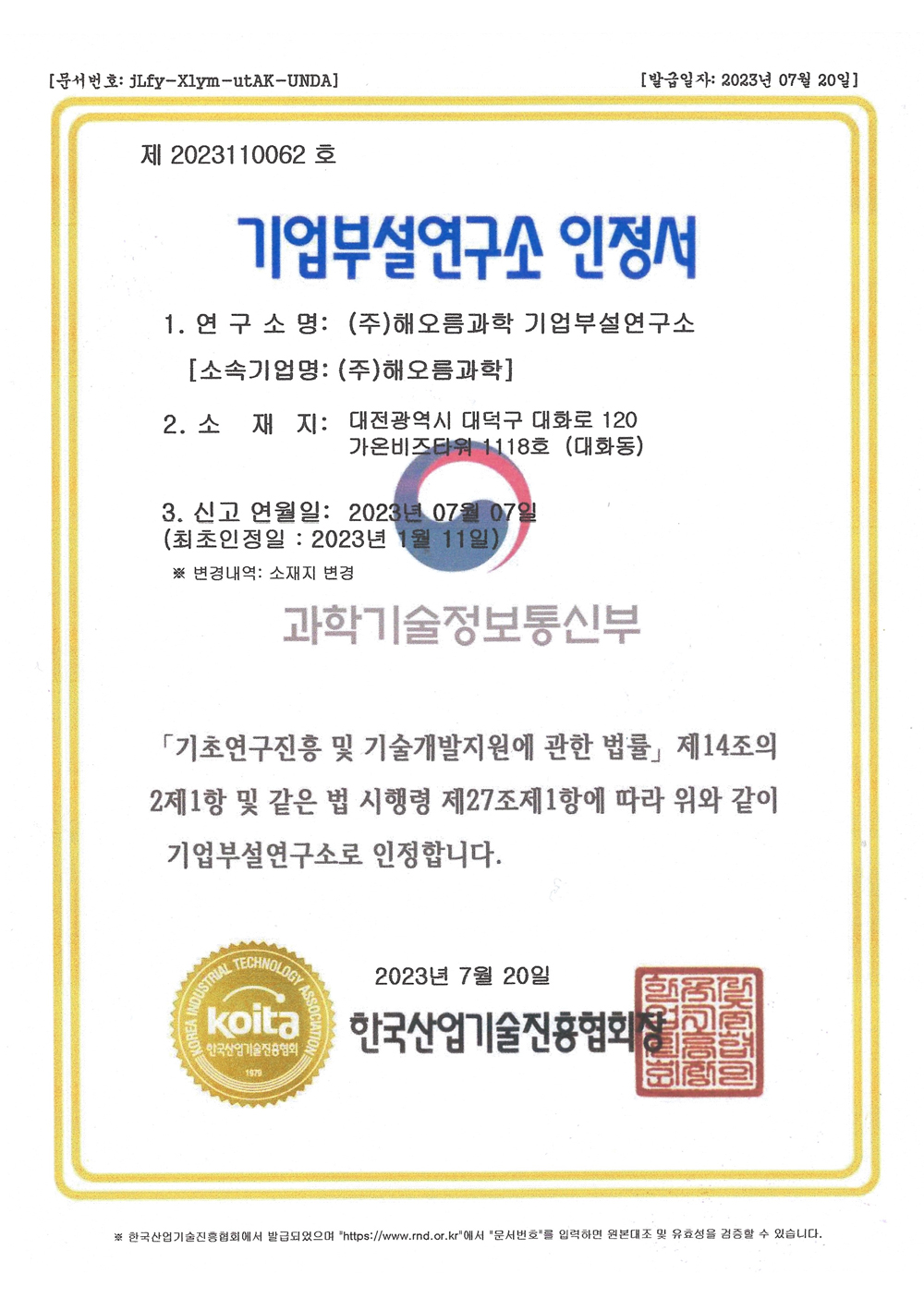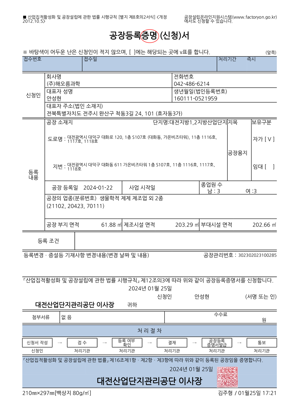 Headquarters 1116, Gaon Biz Tower, 120 Daehwa-ro, Daedeok-gu, Daejeon, South Korea Factory and Research Facility 107, 1117, 1118, Gaon Biz Tower, 120 Daehwa-ro, Daedeok-gu, Daejeon, South Korea